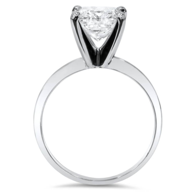 Womens ring features one round brilliant cut genuine lab grown diamond. The diamond is prong set in solid 14k white gold high polished setting.