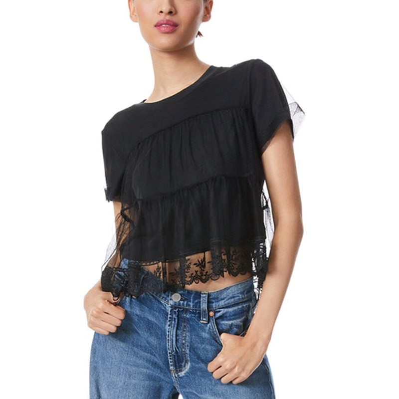 Introducing the alice + olivia Dreema Tiered T-Shirt, a must-have addition to your wardrobe. This stylish women’s t-shirt is perfect for any occasion, offering a whimsical and flirty touch to your everyday look. Hollywood favorite brand alice + olivia, founded by Stacey Bendet in New York City, draws inspiration from femininity and vintage fashion.Designed in a flattering fit, this black Dreema Tiered T-Shirt features tulle ruffle detailing that adds a touch of elegance to your ensemble. With a length of approximately 22.5 inches from the shoulder to the hem, it provides a comfortable and chic look. Made from 100% polyester, this t-shirt is high-quality and requires dry cleaning for proper care. Imported and crafted with attention to detail, this alice + olivia product guarantees authenticity and genuine quality. Please note that we may source some of our items from trusted independent suppliers rather than directly from the brand owner, but we assure you that every product sold on our site is guaranteed authentic.Experience the unique charm and vibrant style of alice + olivia with the Dreema Tiered T-Shirt. Elevate your outfit today with this fashionable piece that sets alice + olivia apart from other brands in the contemporary fashion industry.