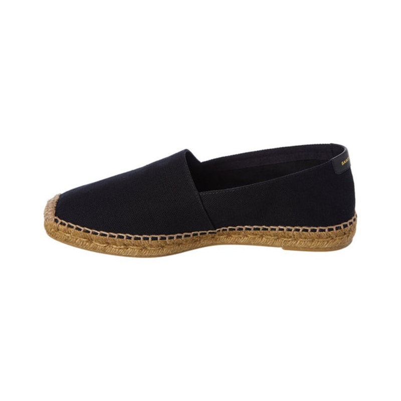 Introducing the Saint Laurent Embroidered Canvas Espadrille, a must-have addition to your summer footwear collection. Crafted by the iconic brand known for its modern glam and tres chic style, these sandals perfectly combine fashion-forward design with superior craftsmanship.Made in Spain, these espadrilles showcase a striking black canvas upper adorned with exquisite embroidered detailing and a classic jute trim. The attention to detail is evident in every stitch, making these shoes a true statement piece.The smooth insole provides all-day comfort, making these sandals suitable for any occasion. Whether you’re strolling along the beach or attending a casual soire, the Saint Laurent Embroidered Canvas Espadrilles are the perfect choice.Designed with a man-made sole, these espadrilles offer excellent traction and durability, ensuring long-lasting wear. These shoes are 100% genuine, sourced from trusted independent suppliers who uphold the same commitment to authenticity as we do.Please note that the size selections for this product are European. To find the perfect fit, please refer to our size chart for US conversions.Elevate your summer style with the Saint Laurent Embroidered Canvas Espadrilles. Order now and experience the unmatched quality and sophistication that only Saint Laurent can deliver.
