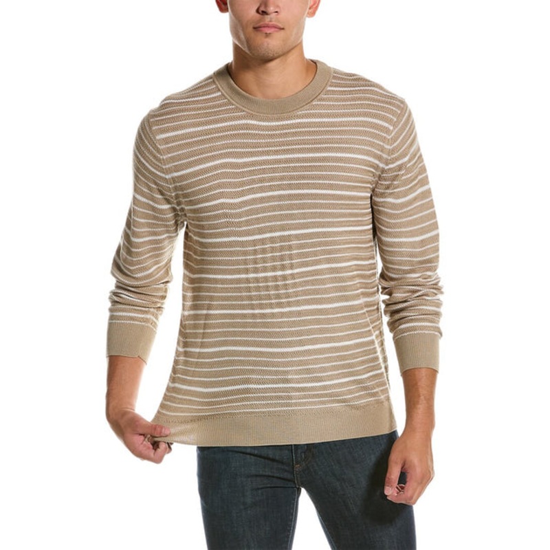 Introducing the Magaschoni Textured Stripe Crewneck Sweater, a timeless staple for any man’s wardrobe. This premium quality sweater, proudly brought to you by the renowned brand Magaschoni, combines comfort, style, and versatility in one sophisticated package.Crafted with meticulous attention to detail, this crewneck sweater features a textured stripe design in a refined Beige Stone and Ivory color pattern, adding an element of sophistication to your ensemble. The neutral tones make it effortlessly pairable with any bottoms, whether it’s tailored trousers or your favorite jeans.Measuring approximately 30 inches from shoulder to hem, this sweater offers a flattering fit that suits every body type. The model showcasing this garment stands at 6’2.5 and wears a size medium, ensuring a comfortable and fashionable fit. Please note that measurements may slightly vary by size.Designed for both style and comfort, this sweater boasts a classic crewneck and ribbed trim, offering a timeless look suitable for any occasion. Whether you’re dressing up for a business meeting or enjoying a casual weekend outing, this sweater effortlessly elevates your overall attire.Constructed from 100% acrylic, this Magaschoni sweater ensures durability, warmth, and easy maintenance. For care, simply hand wash to preserve its soft texture and impeccable shape. This sweater is expertly imported, guaranteeing the highest standards in craftsmanship and design.Elevate your sweater game with the Magaschoni Textured Stripe Crewneck Sweater. Explore the endless possibilities of style and make a statement with this must-have addition to your wardrobe. Order yours today and experience the undeniable quality and sophistication synonymous with the Magaschoni brand.