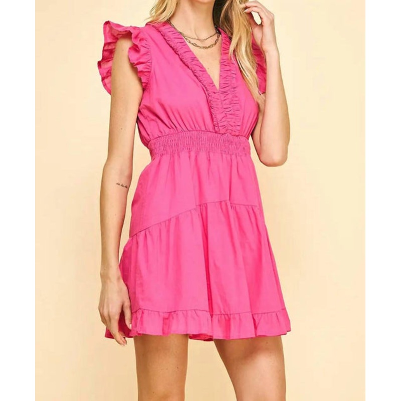 The kind of easy and flattering dress you'll be reaching for all season long.Deep v-neck waist smocking ruffle sleeves tiered. Model is 6" and wears a size small. Fabric - 100% cotton. Care instructions - Hand wash.