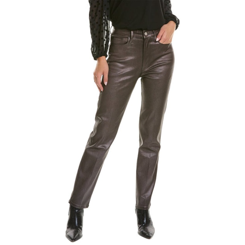 Introducing the FRAME Denim Le Sylvie Mahogany Slender Straight Jean, a must-have addition to your wardrobe. Crafted with meticulous attention to detail, these jeans perfectly embody the brand’s signature aesthetic of dressed-up casual with European influences.Designed in a flattering slender straight fit, these jeans are made from a high-quality denim fabric, ensuring both style and comfort. With a rich mahogany hue, they add a touch of sophistication to any outfit.Featuring classic five-pocket styling and belt loops, these jeans provide functional versatility. The zip fly with button closure adds a touch of convenience to your everyday wear.With an inseam measuring approximately 29 inches, these jeans create a sleek and elongated silhouette. The front rise measures 12 inches, while the back rise measures 13.5 inches, offering a comfortable and flattering fit.The leg opening has an approximate circumference of 13 inches, allowing for easy pairing with your favorite footwear. Whether you dress them up or down, these jeans are sure to elevate your style game.Crafted from a blend of 77.5% cotton, 14% rayon, 6% polyester, and 2.5% elastane, these jeans offer excellent durability and stretch. They are machine washable for easy care, ensuring that you can enjoy them for seasons to come.As worn by our model, who stands at 5’9′ and is wearing a size 27, these jeans may vary slightly in measurements by size. Rest assured that we have taken every effort to provide you with the perfect fit.Discover the impeccable style and superior craftsmanship of FRAME Denim with the Le Sylvie Mahogany Slender Straight Jean. Imported and designed to withstand the tests of time, these jeans are a wardrobe essential for any fashion-forward woman.