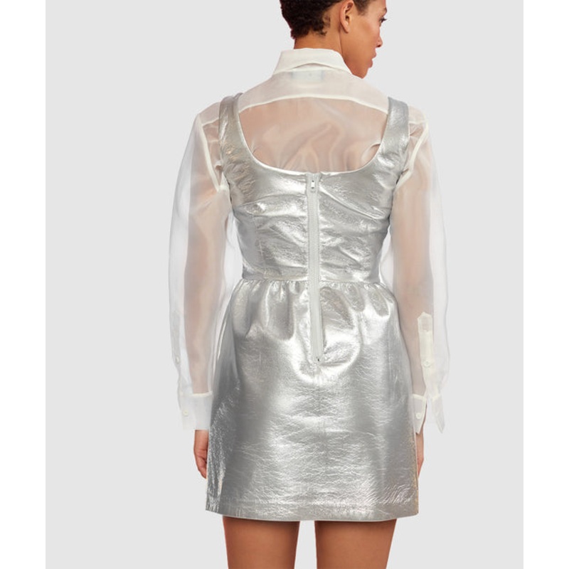 Metallic silver vegan leather dress.