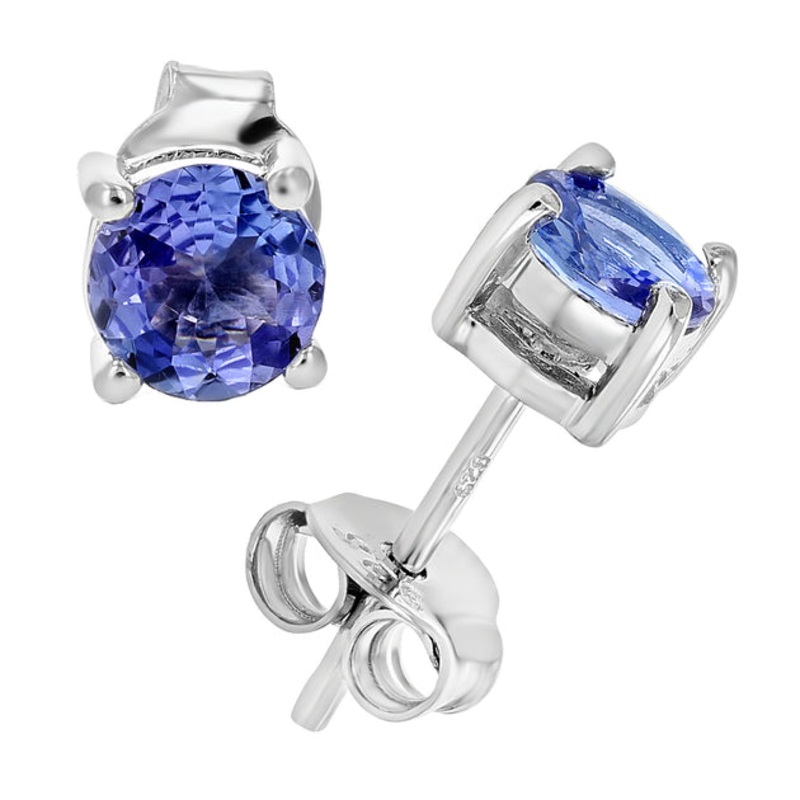 Lovely, elegant tanzanite stud earrings in .925 sterling silver. The 2 sparkling natural tanzanite gemstones are heat treated and set in 4 prong basket setting with push backs (butterfly friction backs). The total carat weight of the earrings are 3/4 cttw. Gift box is included with purchase of these earrings.